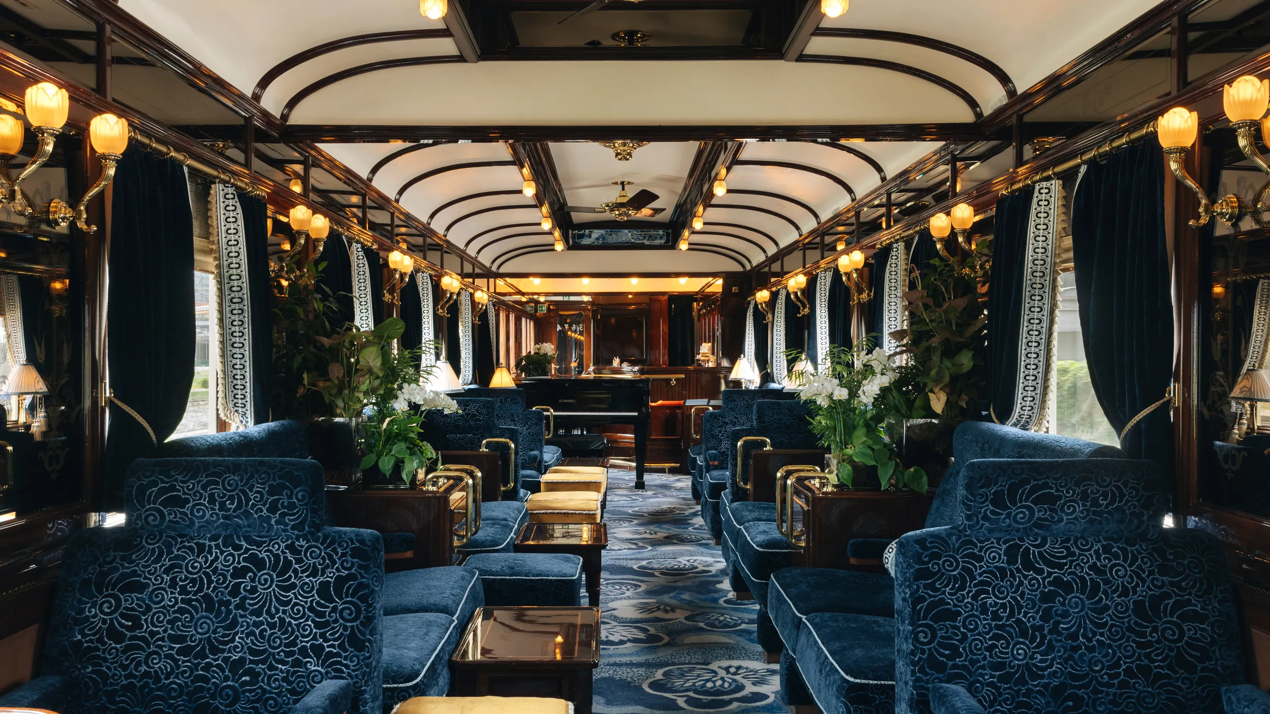 The Venice Simplon-Orient-Express is perhaps the most famous luxury train in the world. Operating routes from London and Paris to Venice, Prague, and Istanbul, this train embodies 1920s glamour with its vintage carriages, Lalique glass, and polished wood interiors.