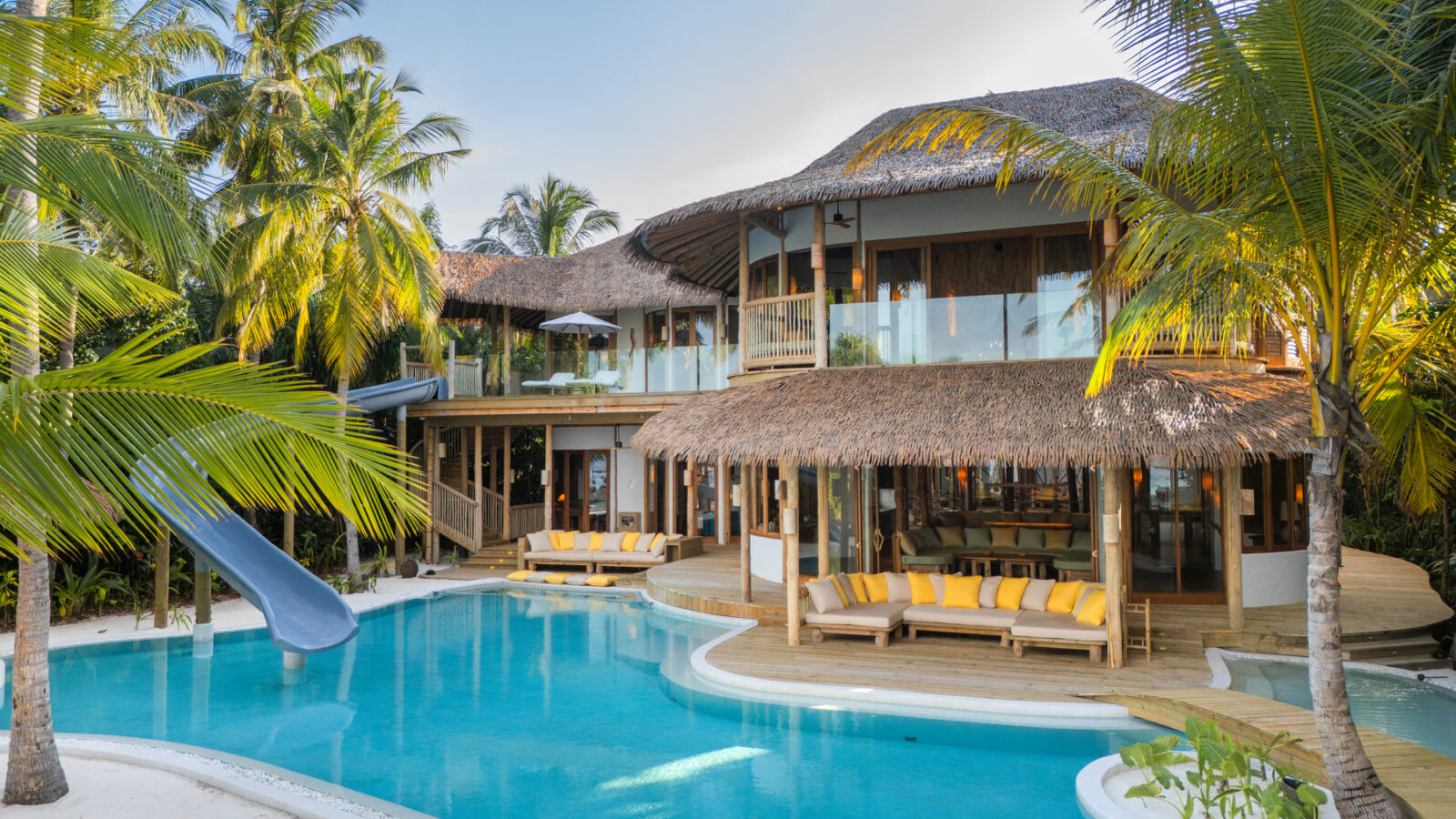 Each villa is designed with locally sourced materials and blends seamlessly into the natural environment. The resort also runs the Soneva Foundation, which supports coral reef restoration, clean water access, and education programs in local villages.